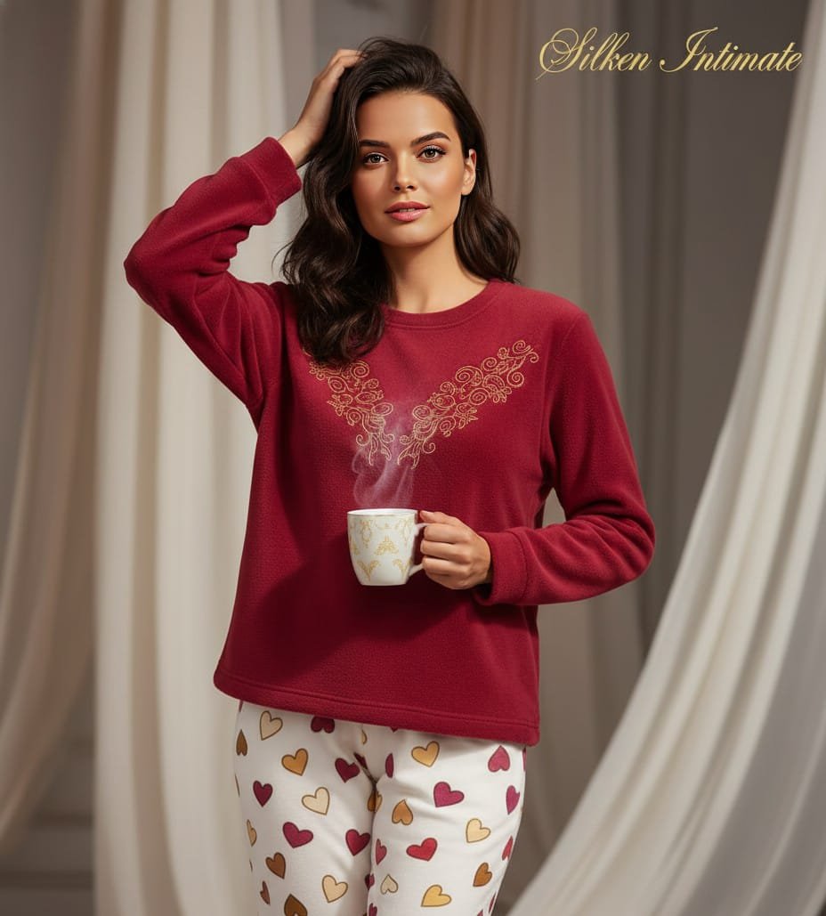 💖 Coziness and Charm: Silken Intimate Fleece Nightwear