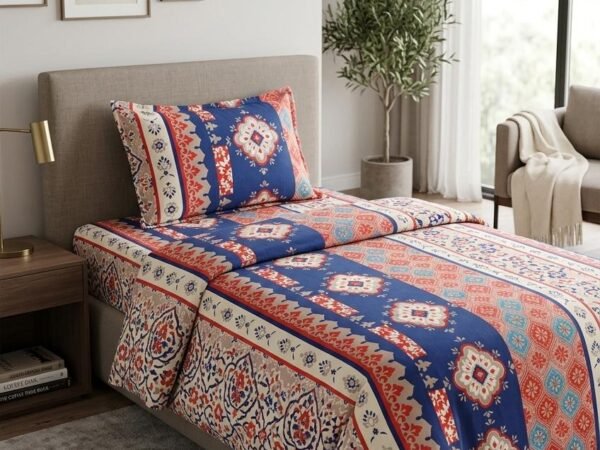 - 3-Piece Set – 1 bedsheet + 2 matching pillow covers