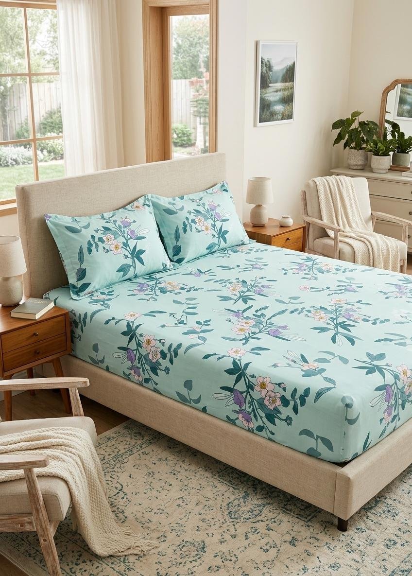 - 3-Piece Set – 1 bedsheet + 2 matching pillow covers