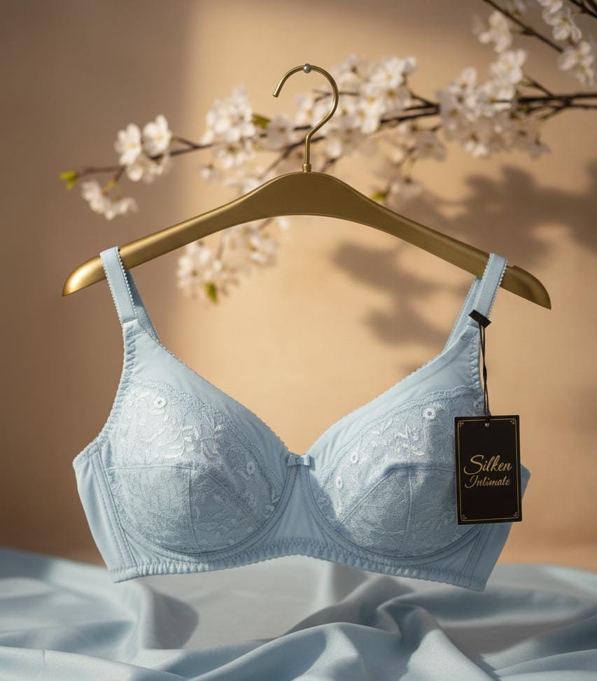 This bra is crafted from soft, breathable cotton fabric, making it ideal for all-day wear, especially in warmer weather. It features delicate, stylish embroidery—often floral or geometric—on the cups or trim, transforming a comfortable essential into a beautiful piece of lingerie.