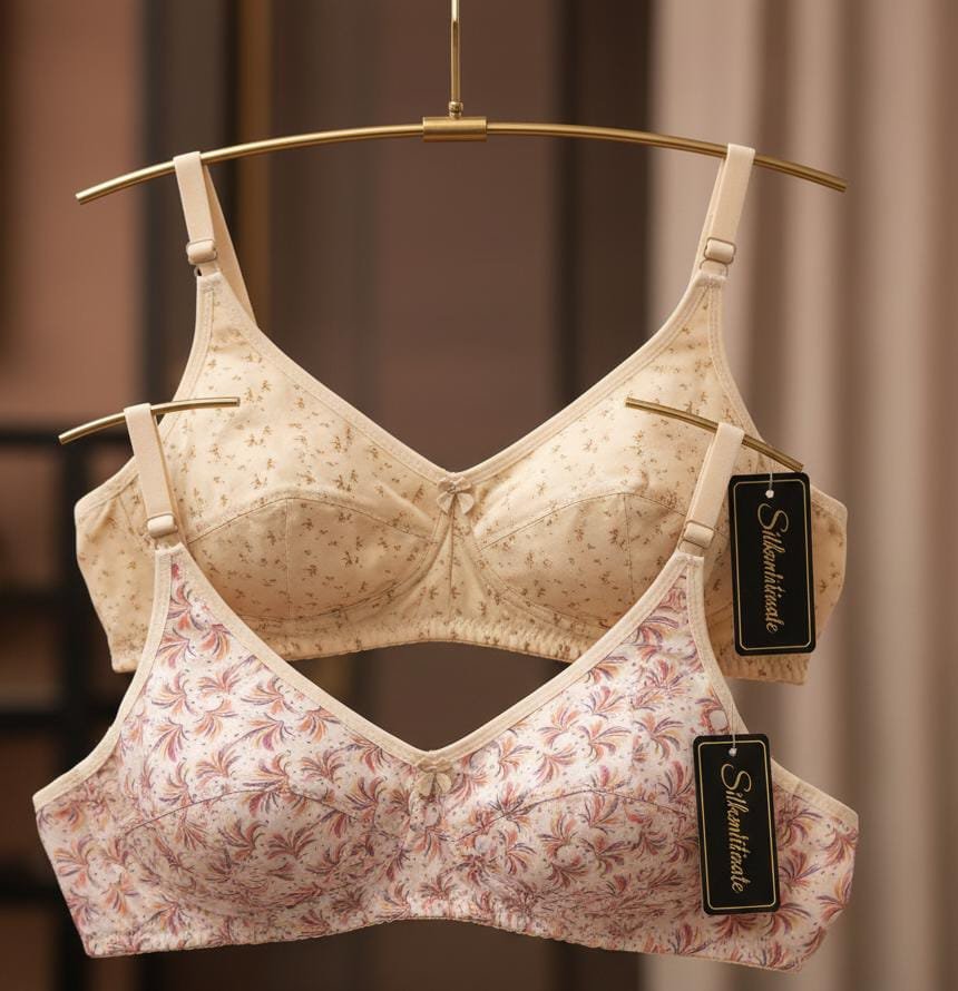 Experience ultimate everyday comfort and support with this beautiful set of two cotton bras.